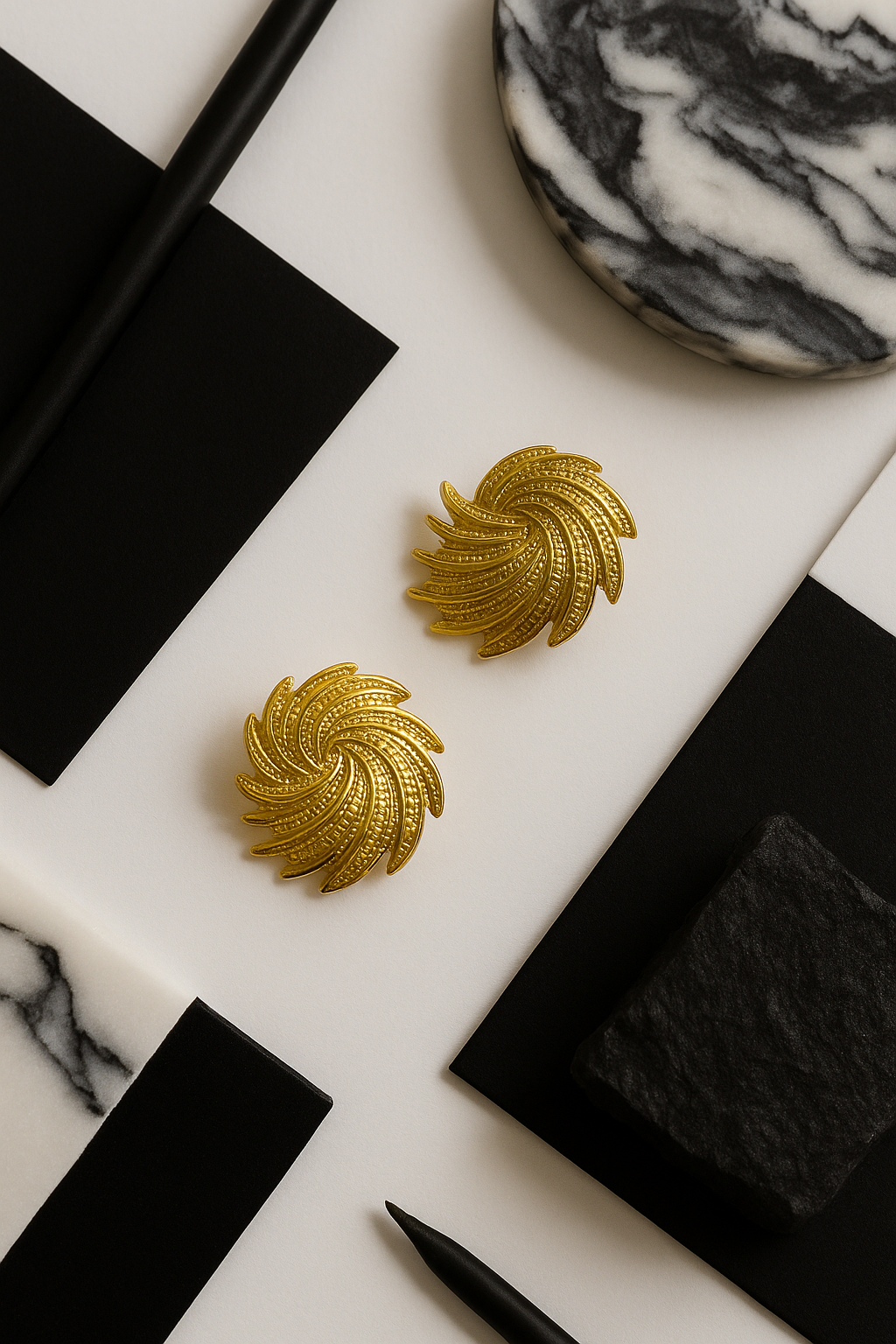 Step into timeless elegance with our Golden Aura Swirl Studs, designed to make every moment shine. The intricate swirl pattern reflects sophistication and power — crafted in high-shine gold finish for that perfect festive glow. Whether it’s a wedding, dinner, or a grand celebration, these earrings add just the right amount of luxury to your look.